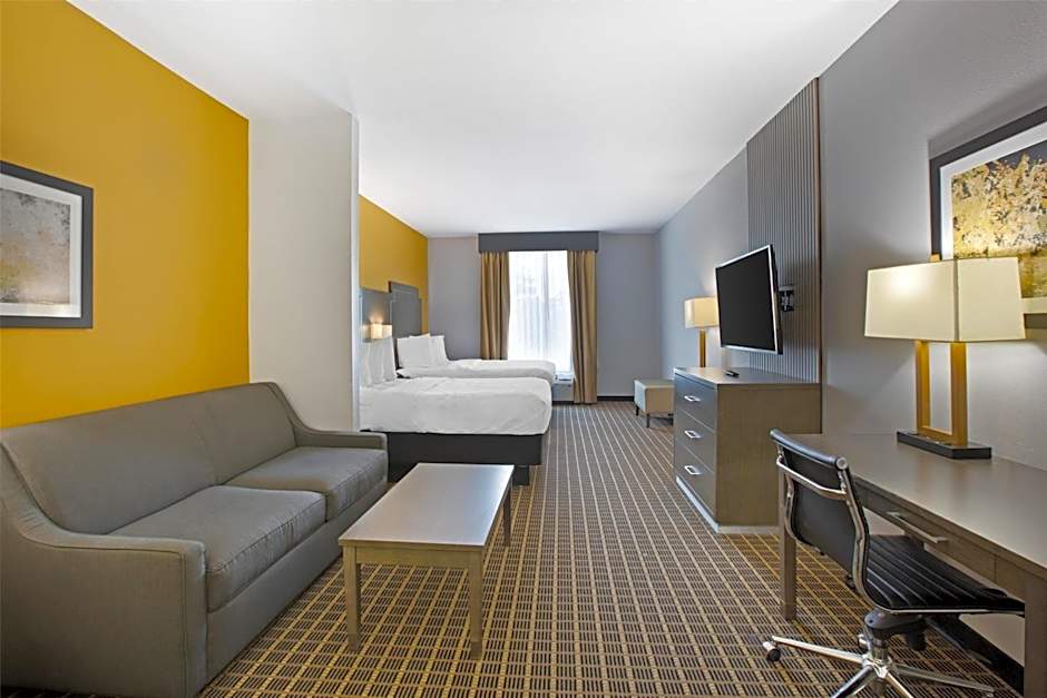 The family room features a tea and coffee maker. The unit has 3 beds.